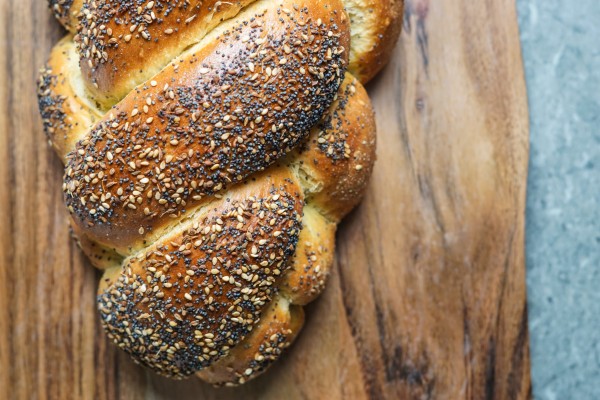 The Moroccan Jewish community developed another special holiday challah called “Pain Petri.” It’s a beautiful, five-braided loaf whose shape is meant to symbolize the ascent to heaven. Sensually spicy, it’s a rich, egg-based dough sweetened with honey and rolled in magnanimous amounts of anise, poppy, and sesame seeds. To some, the seeds represent the manna that fell from heaven while the Israelites wandered the desert after the Exodus from Egypt.