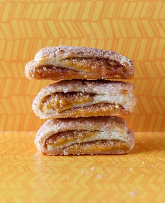 Rugelach are the royalty of Jewish baked goods: crispy, flaky, cream cheese pastry, dressed in cinnamon sugar, rolled around a sweet filling. Small enough to devour in a few bites each, rich enough so a box lasts for a long time. Rugelach make great host gifts.